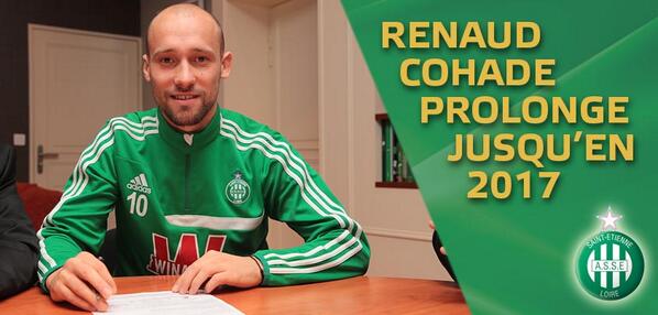 L'AS Saint-Etienne a annoncé ce vendredi la prolongation de contrat de son milieu de terrain Renaud Cohade pour deux saisons supplémentaires. L'ancien Valenciennois est désormais lié aux Verts jusqu'en juin 2017. «Je suis très content de prolonger et de m'inscrire ainsi dans le projet du club, a déclaré le joueur de 29 ans. C'est une marque de confiance réciproque. Je me sens très bien dans le groupe. Je suis épanoui à Saint-Etienne, c'est ici que je vis les meilleurs moments de ma carrière.»