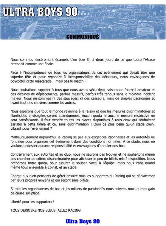d'ou cette imbroglio de raon qui veut un nombre définit et minime de supporters strasbourgeois pour etre sur que les tribunes seront derriere eux. -